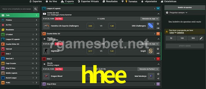 O hhee oferece uma grande seleção de opções de apostas em e-sports com probabilidades competitivas